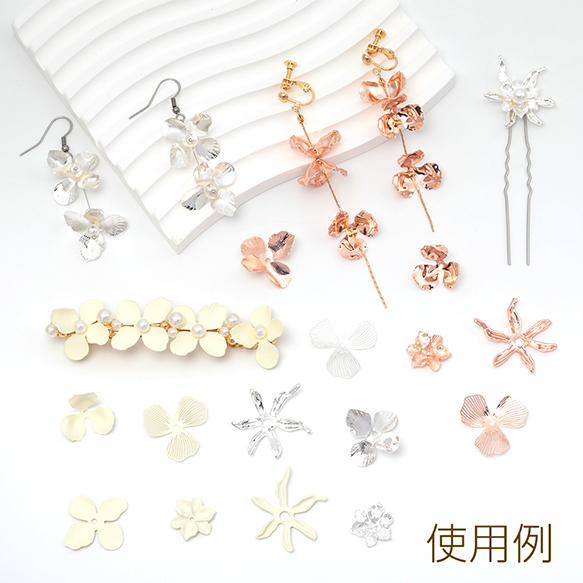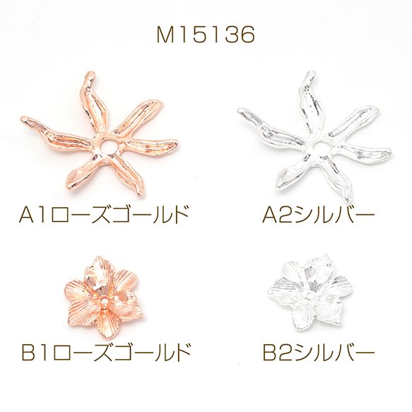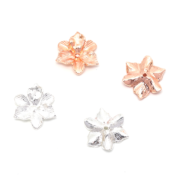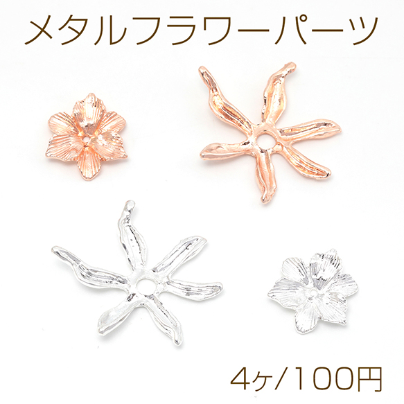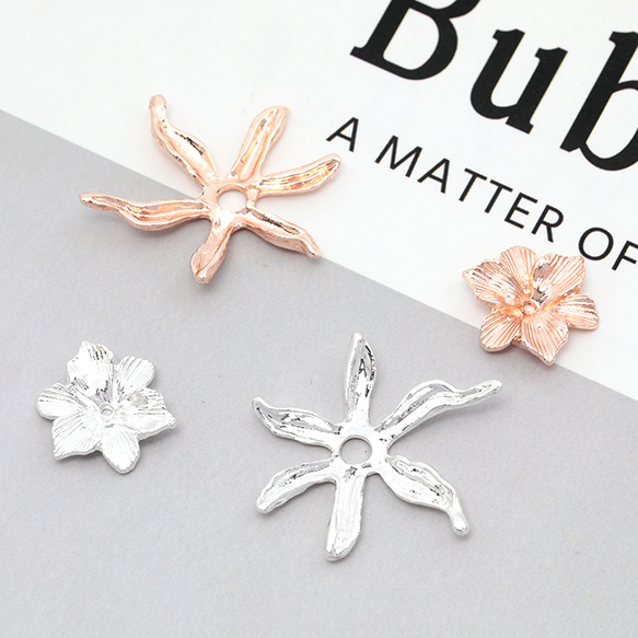 メタルフラワーパーツ 金属花パーツ 花びらパーツ 中心に穴あり ビーズキャップ ピアス イヤリング制作におすすめ(4ヶ)