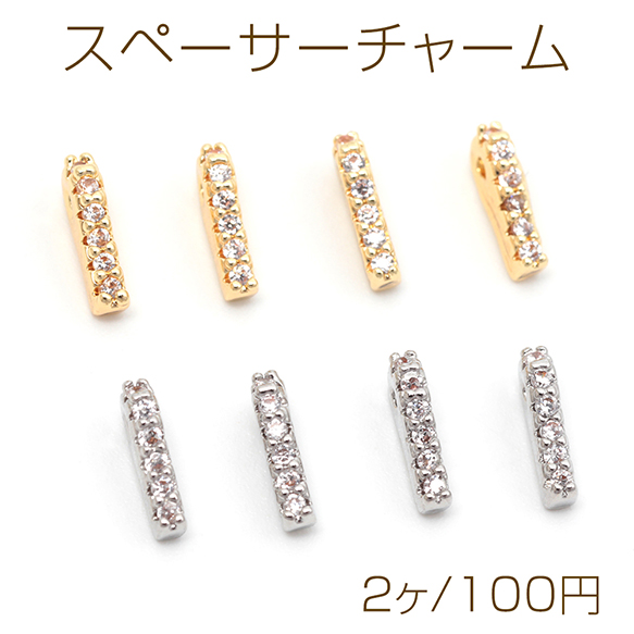 スペーサーチャーム スペーサービーズ ジルコニア付き ブレスレット ネックレス制作におすすめ 穴あり 約1.5×7mm(2ヶ)