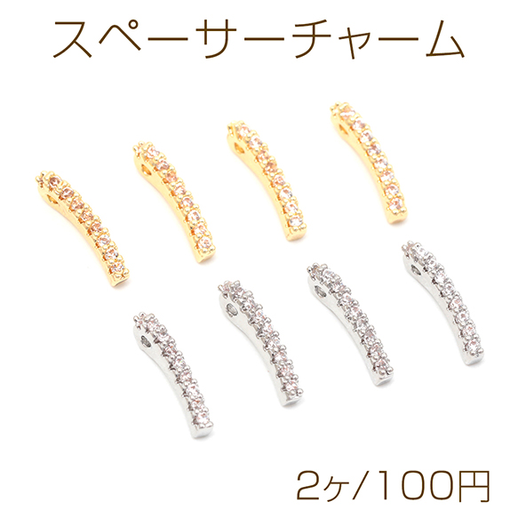 スペーサーチャーム スペーサービーズ ジルコニア付き ブレスレット ネックレス制作に最適 穴あり 約1.5×10mm(2ヶ)