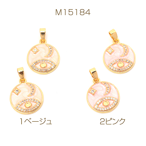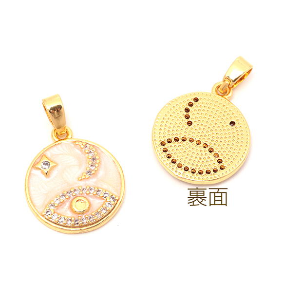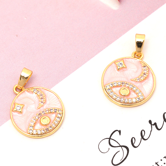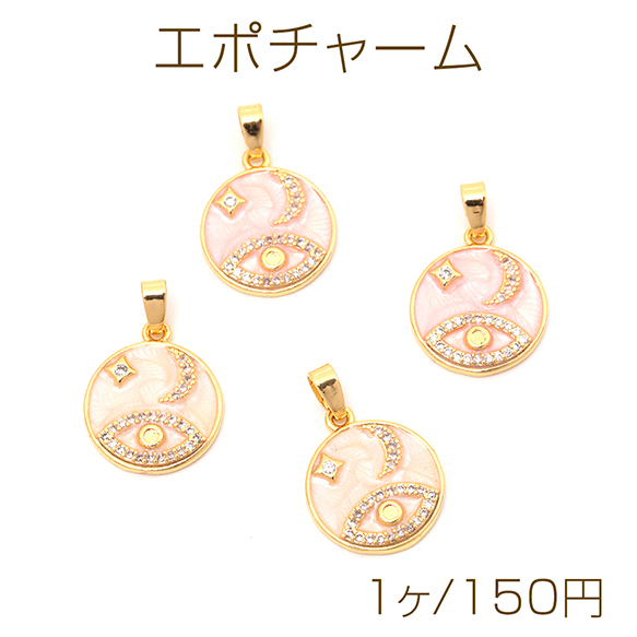 エポチャーム アイチャーム 星 月 目 ストーン付き 丸型 ピンクプレートチャーム バチカン付き 約15×17mm(1ヶ)
