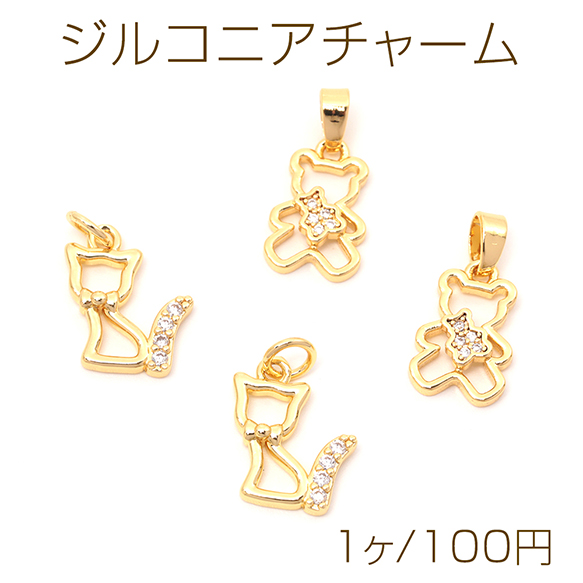ジルコニアチャーム クマモチーフ 猫モチーフ 立体クマチャーム 熊 テディベア 動物チャーム 丸カン付き 全2種(1ヶ)