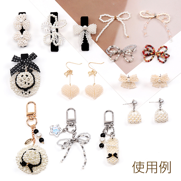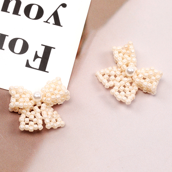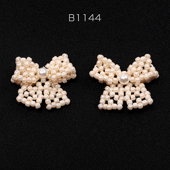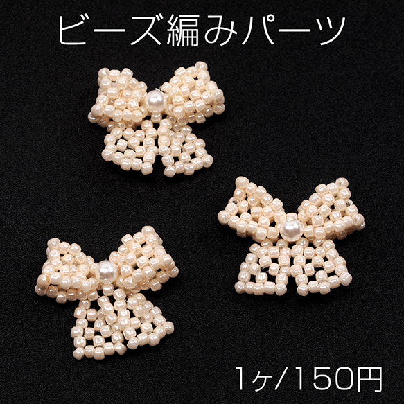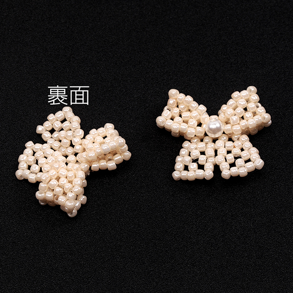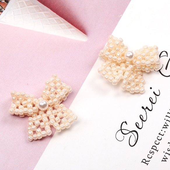 ビーズ編みパーツ リボンカボション パール調ビーズリボンパーツ ヘア飾り制作におすすめ 約22×25mm(1ヶ)