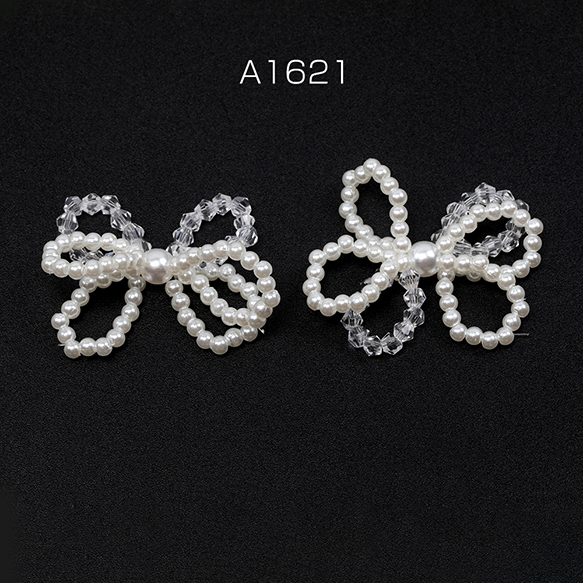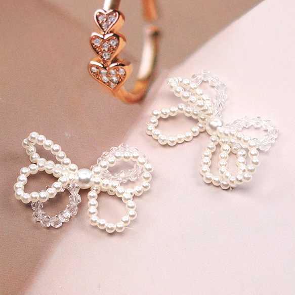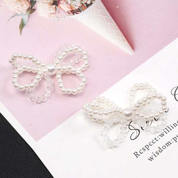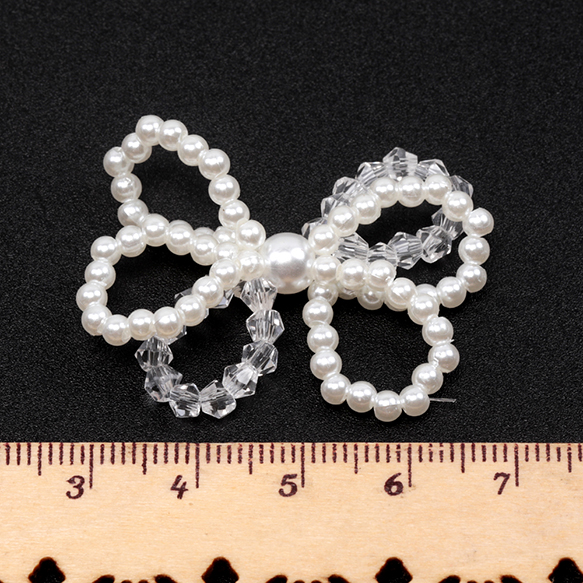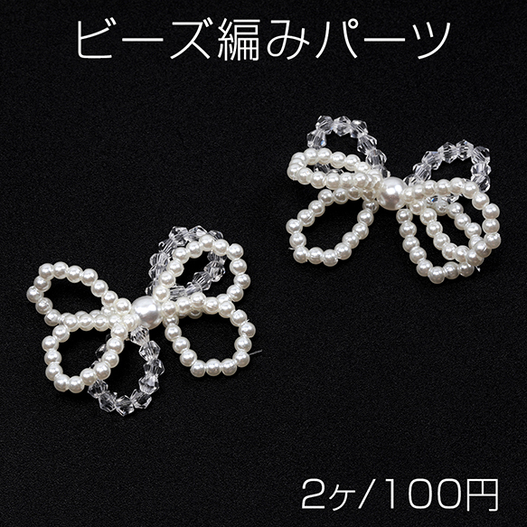 ビーズ編みパーツ ビーズリボンチャーム ビーズリボンパーツ ビーズカボション ヘアアクセサリー制作におすすめ(2ヶ)