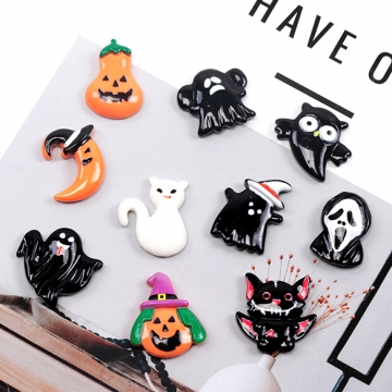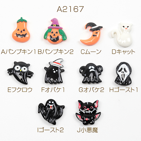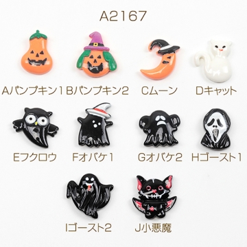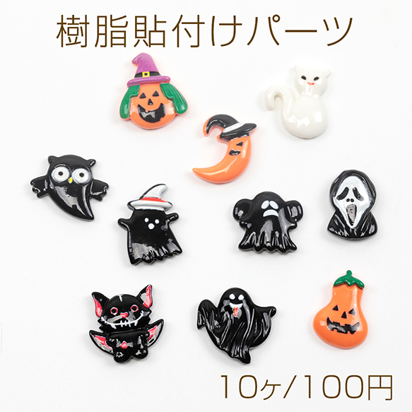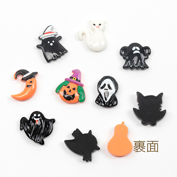 樹脂貼付けパーツ ハロウィンモーチフ かぼちゃ オバケ ゴースト ハロウィンデコパーツ 季節パーツ 約15×22mm(10ヶ)