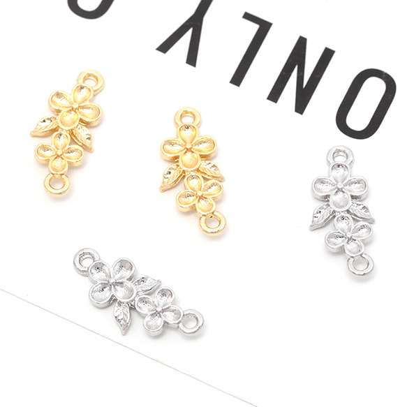 デザインコネクター 花 フラワーモチーフ ジョイントパーツ 接続金具 連結パーツ 2カン 約8×18mm(6ヶ)