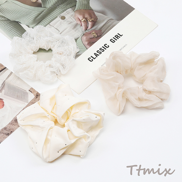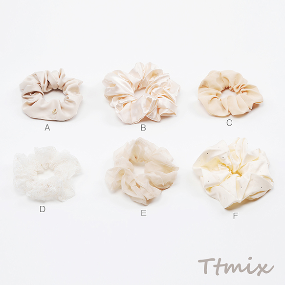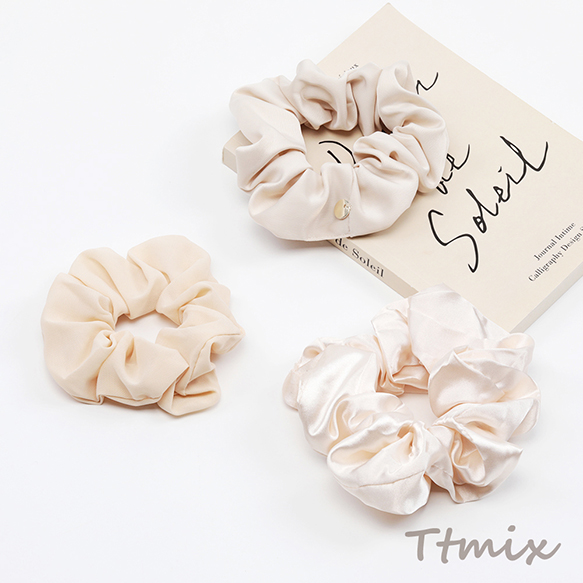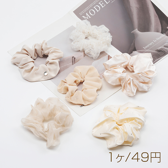 シュシュ ベージュ系 使いやすいデザイン 通勤 通学 おでかけ ヘアアレンジ ヘアゴム 髪飾り 髪アップ (1個)