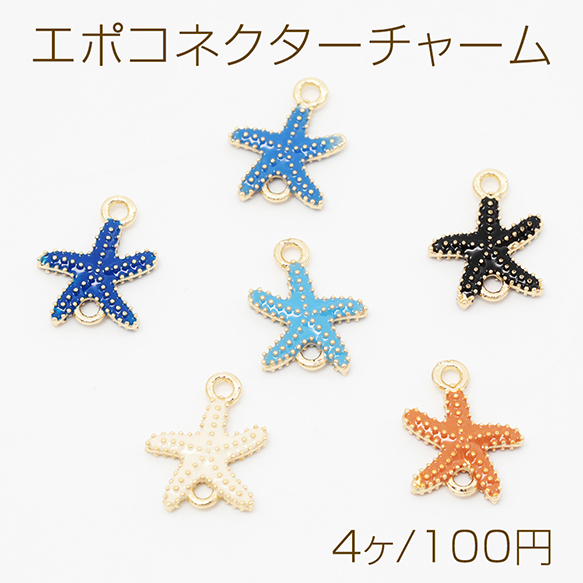 エポコネクターチャーム ヒトデコネクターパーツ マリンチャーム ジョイントパーツ 接続金具 2カン 約9×11mm(4ヶ)