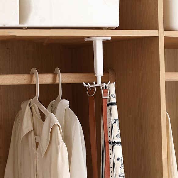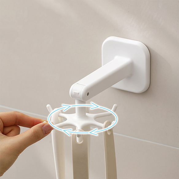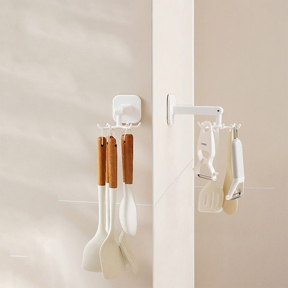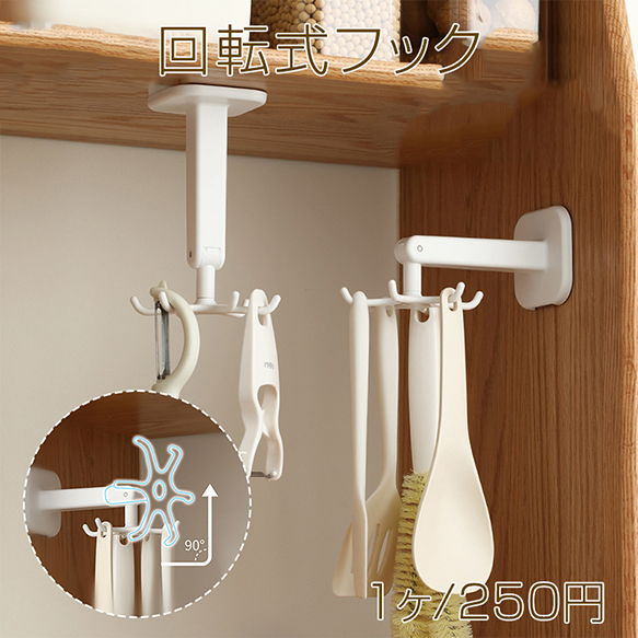 回転式フック キッチン用品 キッチン収納 壁掛け ベルト収納 6本フック パンチフリー(1ヶ)