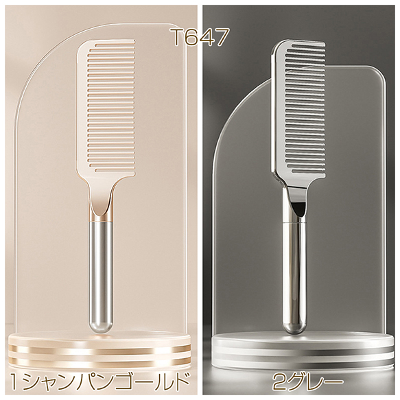 フラットヘアコーム メタリック調コーム ヘアケアコーム ダメージレス コーム ヘアブラシ ヘアスタイリング (1個)