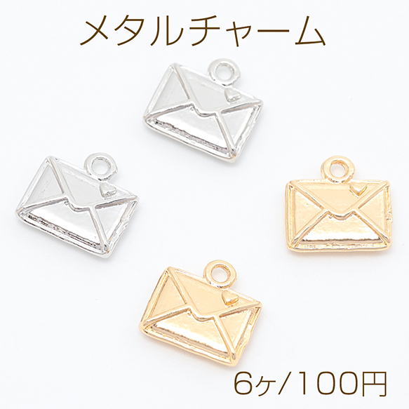メタルチャーム レター 封筒 手紙 メッセージ メタルパーツ 約11×11mm(6ヶ)