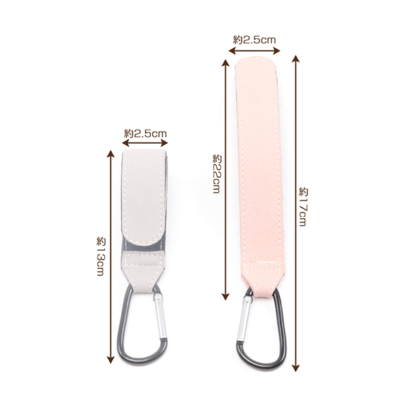 ベビーカー用フック マイクロファイバー マジックテープで固定 自転車 荷物掛け カバン掛け 約2.5×22cm(1ヶ)
