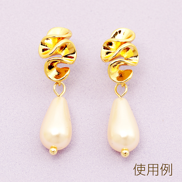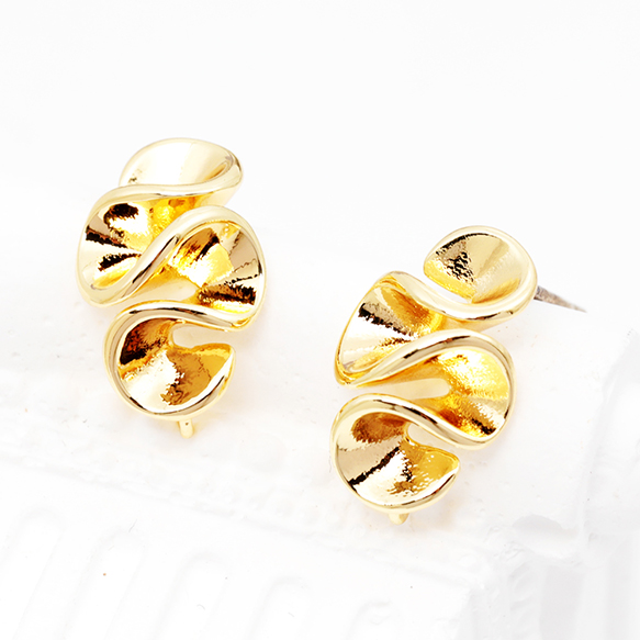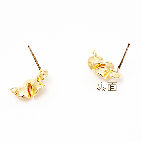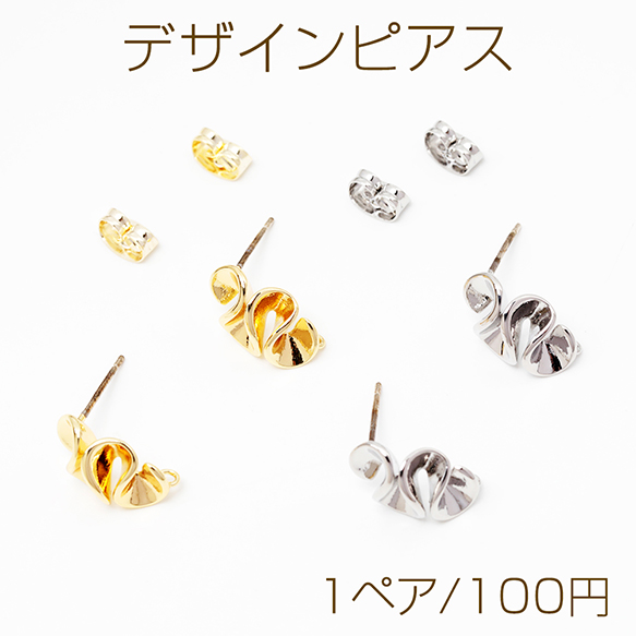 デザインピアス 花びらのようなウェーブ デザイン レディースピアス キャッチ付き 裏カン付き 約8×13mm(1ペア)