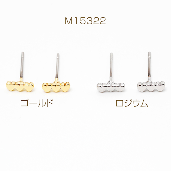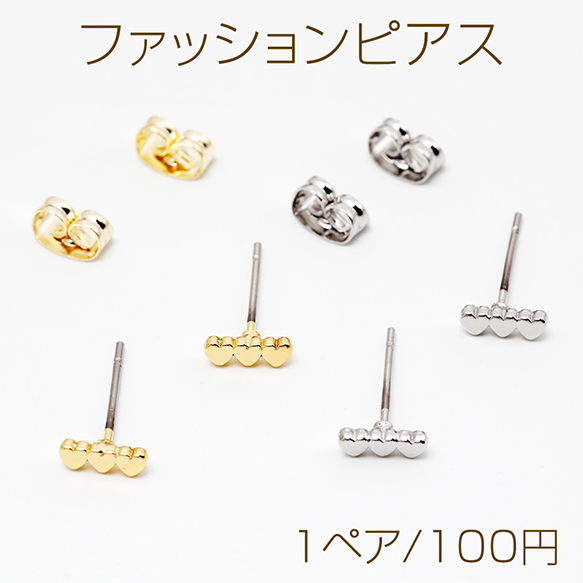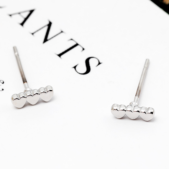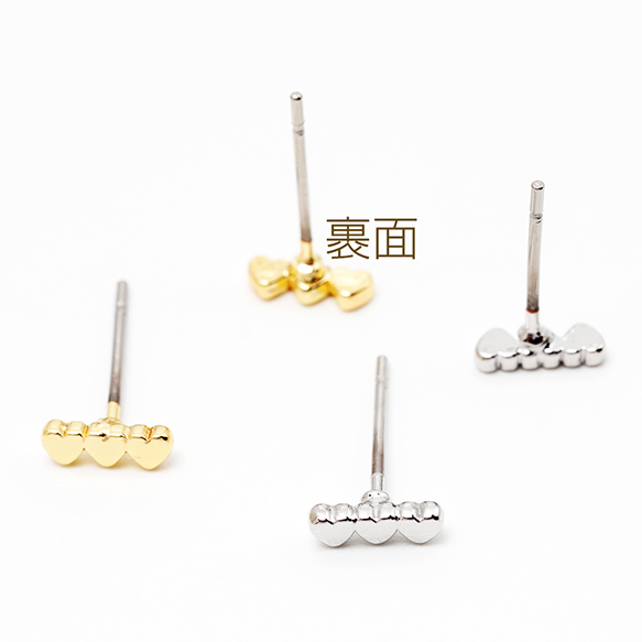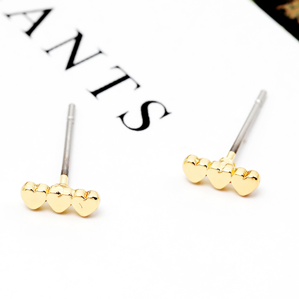 デザインピアス 小さめ トリプルハートピアス メタルピアス 耳飾り 約2.5×7mm(1ペア)