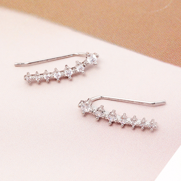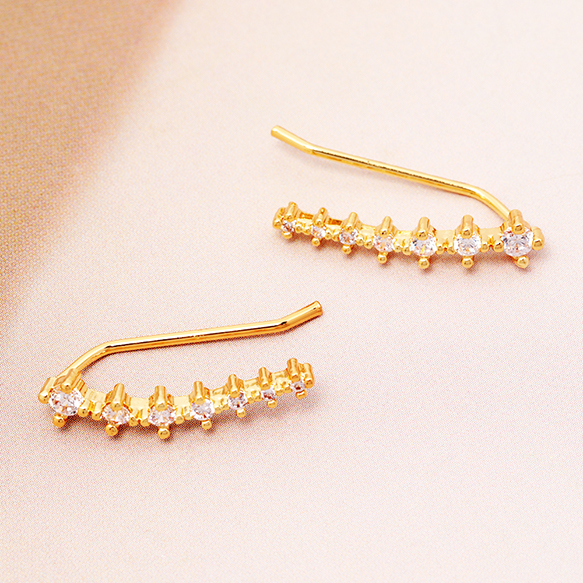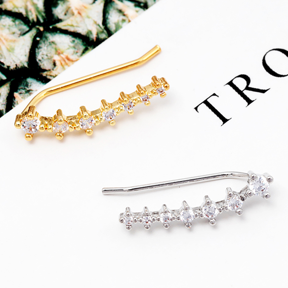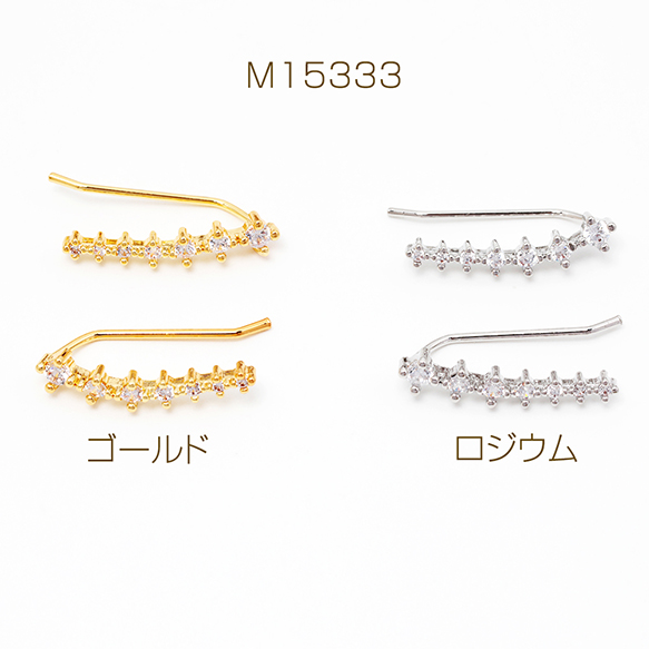 デザインフックピアス ジルコニアフックピアス キラキララインストーン付き 耳飾り おしゃれ 約4×20mm(1ペア)