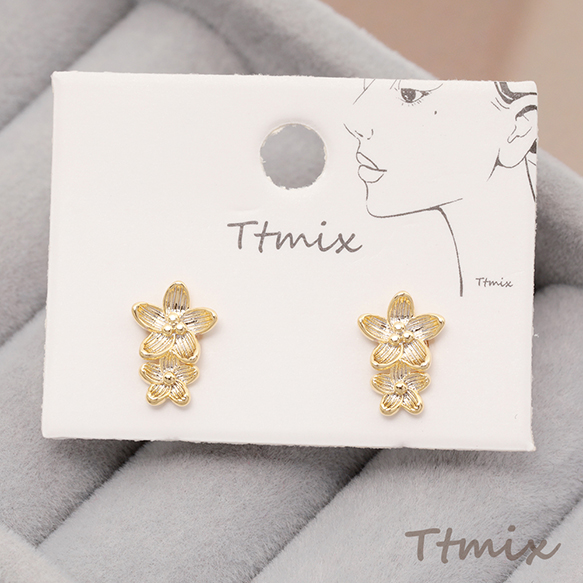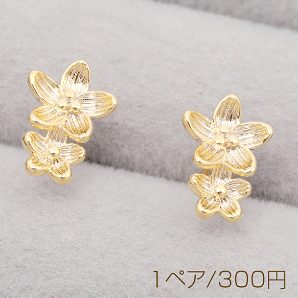 ファッションピアス フラワーピアス 2輪花ピアス 可愛い アンティーク調 デザインピアス 約8×11mm(1ペア)