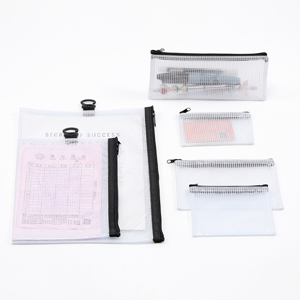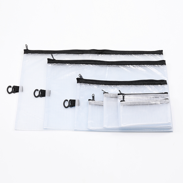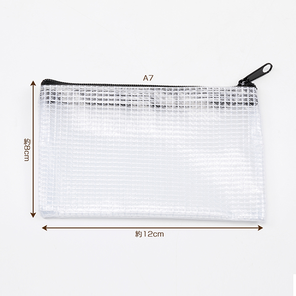 PVCポーチ A7 防水 半透明 メッシュ ジッパー付き 書類 領収書 文房具 雑貨 アクセサリー入れ 約8×12cm(1ヶ)
