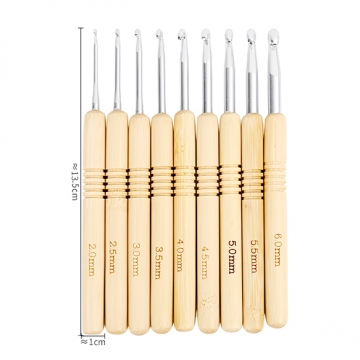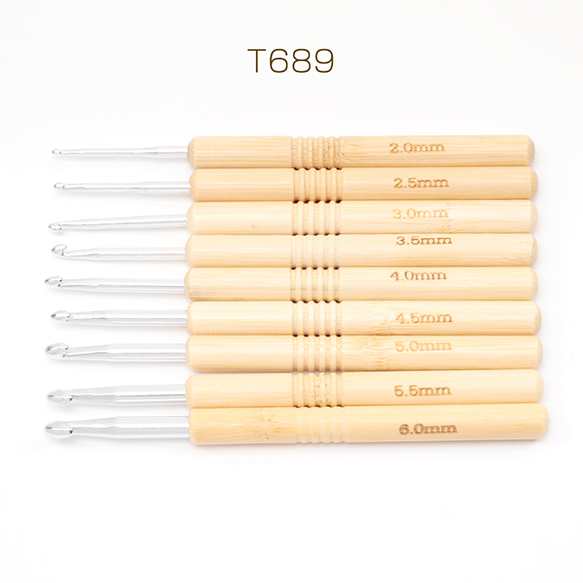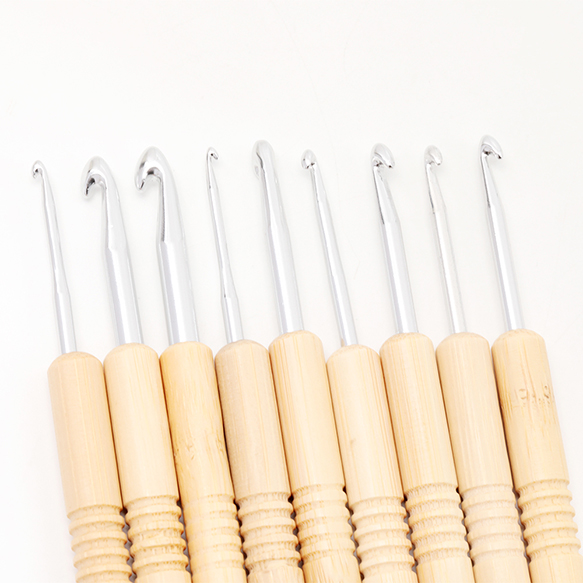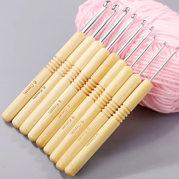 かぎ針 初心者さんも安心 9本セット 毛糸 編み物 編み針 手作り マフラー 手袋 あみぐるみ 持ち手竹製(1セット)