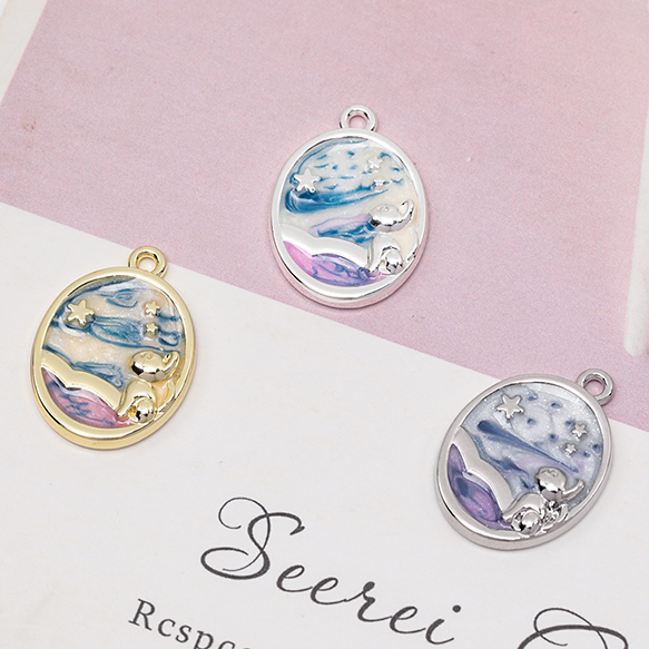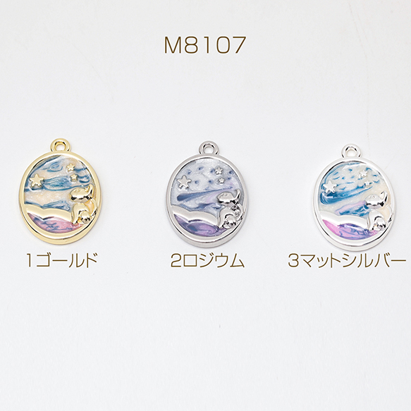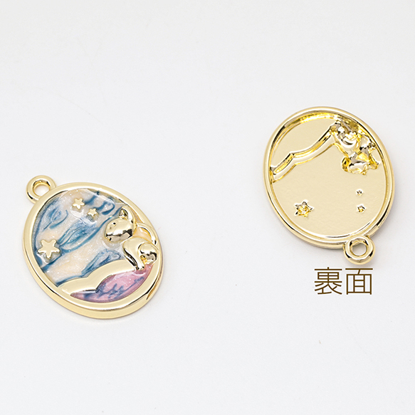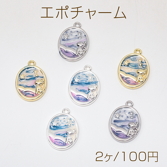 エポチャーム オーバル 星空 ビーチ 海辺 海岸 宇宙 コスモ 惑星 メタルチャーム 約16×22mm(2ヶ)