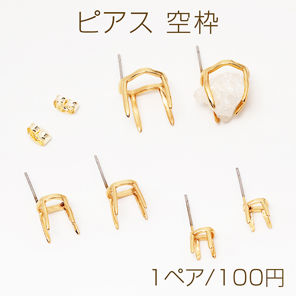 ピアス 空枠 石座 台座 ストーンセッティング 爪付き ピアス金具 全3種(1ペア)