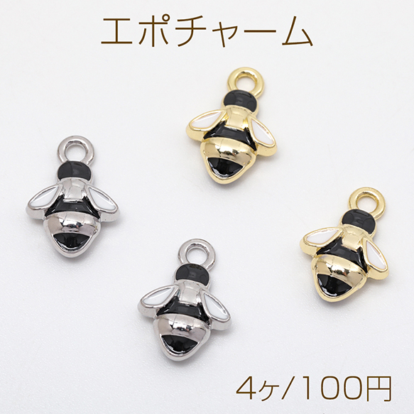 エポチャーム 蜂 ハチ みつばち 立体 いきもの メタルチャーム 約10×14mm(4ヶ)
