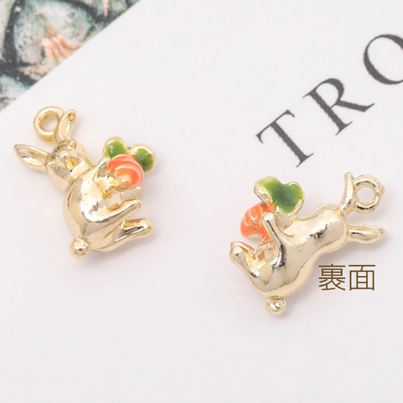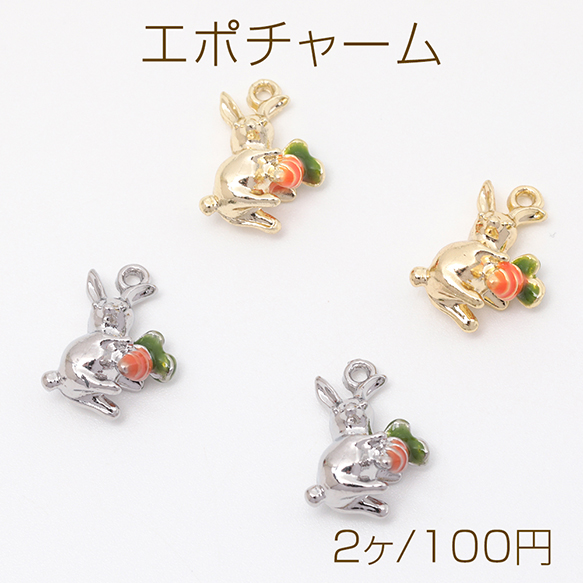 エポチャーム うさぎ 兎 バニー ラビット にんじん 立体 動物 アニマル メタルチャーム 約10×14mm(2ヶ)