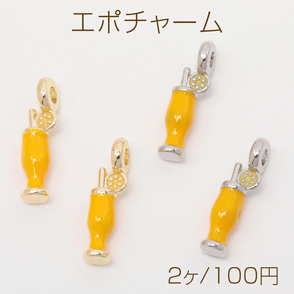 エポチャーム ジュース オレンジ サイダー ドリンク 立体 夏 ミニチュア メタルチャーム 約5×19mm(2ヶ)