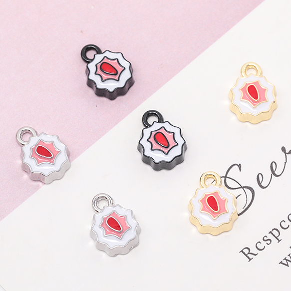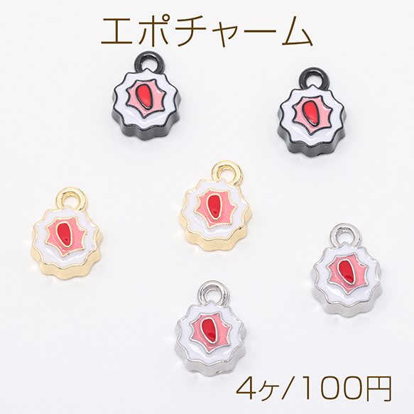 エポチャーム イラスト風 いちご ケーキ 半面 スイーツ ミニチュア メタルチャーム 約9×12mm(4ヶ)