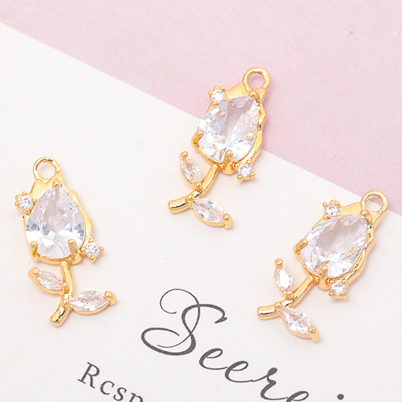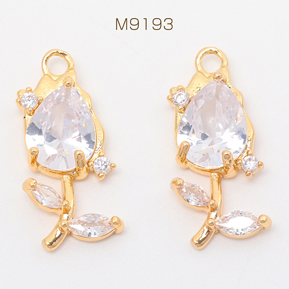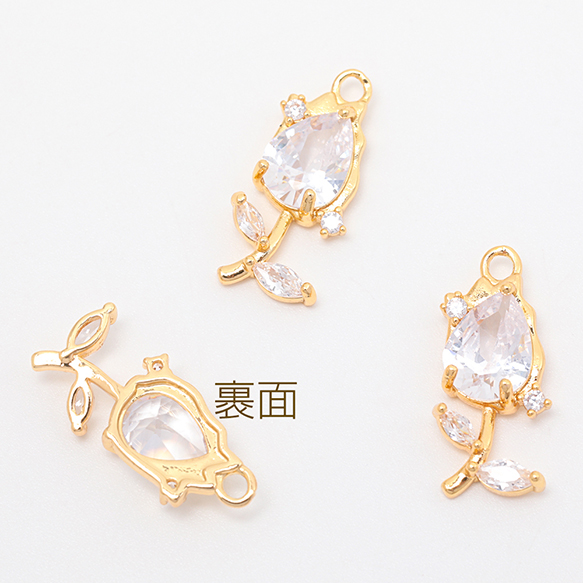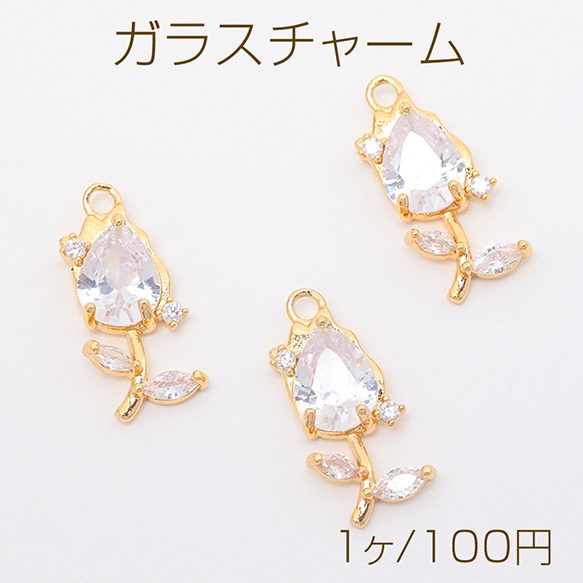 ガラスチャーム チューリップ ストーン付き お花 フラワー メタルチャーム 約9×21mm(1ヶ)