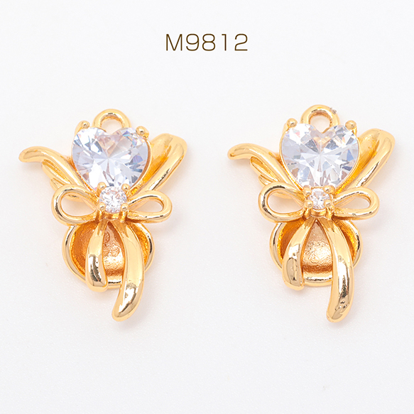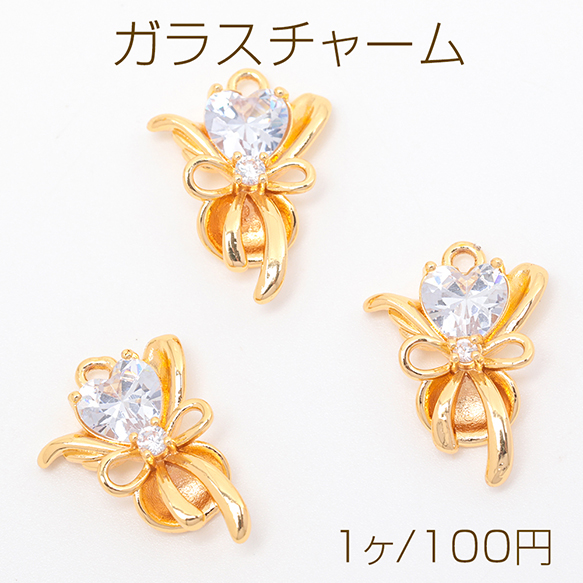 ガラスチャーム ブーケ ハート ストーン付き お花 花束 フラワー メタルチャーム 約15×21mm(1ヶ)