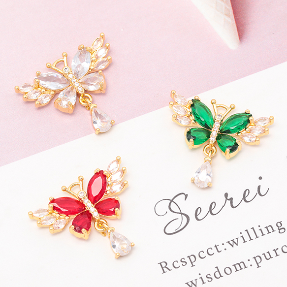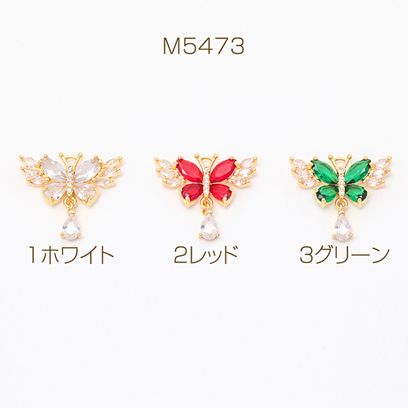ガラスチャーム フラワー 羽ばたく蝶々 揺れるしずく ストーン付き 可憐 メタルチャーム 約20×23mm(1ヶ)