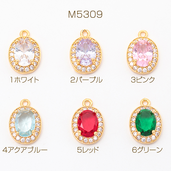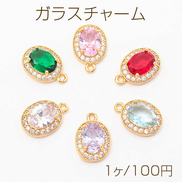 ガラスチャーム オーバル 宝石風 クリスタルカット ストーン付き キラキラ メタルチャーム 約10×14mm(1ヶ)