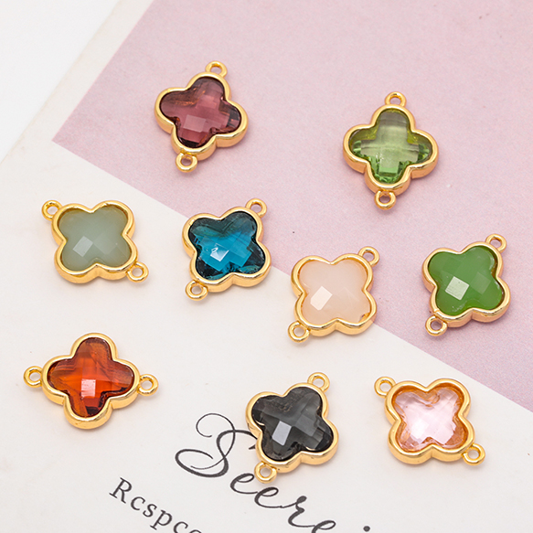 コネクターチャーム フラワー ガラスチャーム 連結パーツ 接続金具 メタルチャーム 約12×16mm(2ヶ)