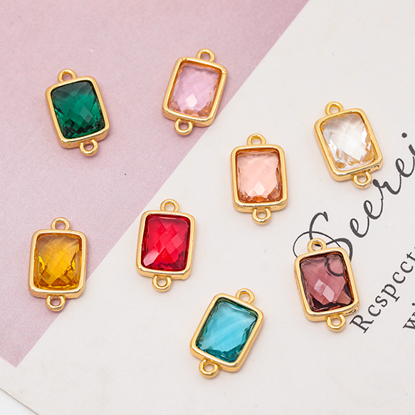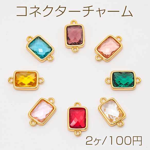 コネクターチャーム スクエア 長方形 ガラスチャーム 連結パーツ 接続金具 メタルチャーム 約8×14mm(2ヶ)