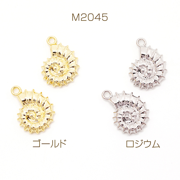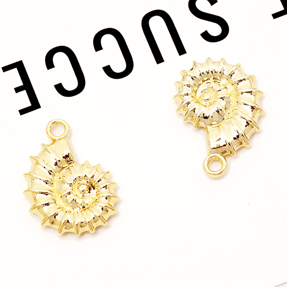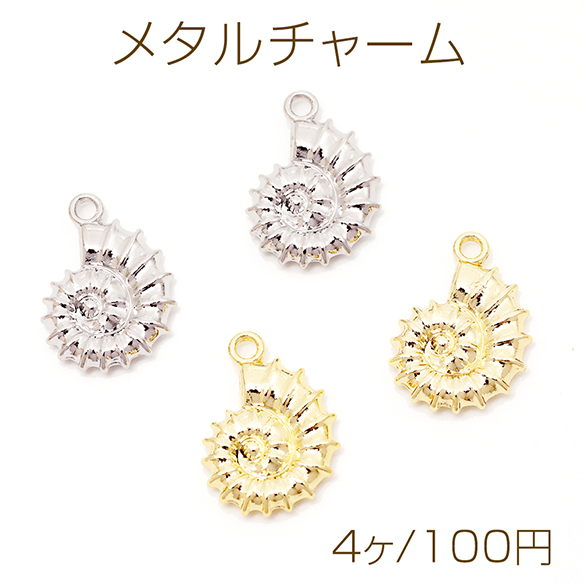 メタルチャーム 貝殻 うずまき 巻き貝 アンモナイト 海 夏 マリンチャーム 約15×21mm(4ヶ)