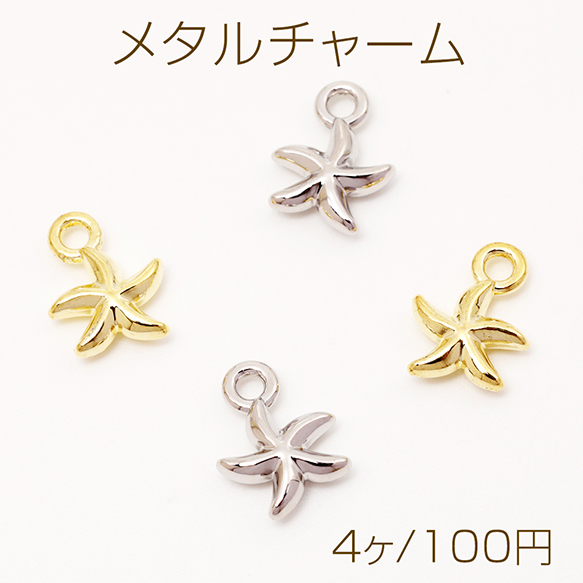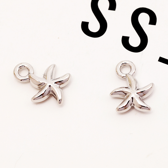 メタルチャーム ヒトデ 模様なし 立体 海 夏 マリンチャーム 約8×11mm(4ヶ)