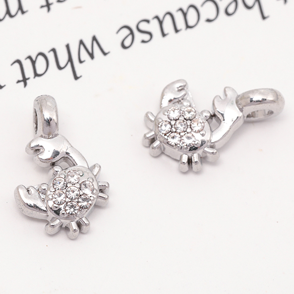 メタルチャーム カニ 蟹 立体 ストーン付き 海 マリンチャーム 約8×13mm(4ヶ)