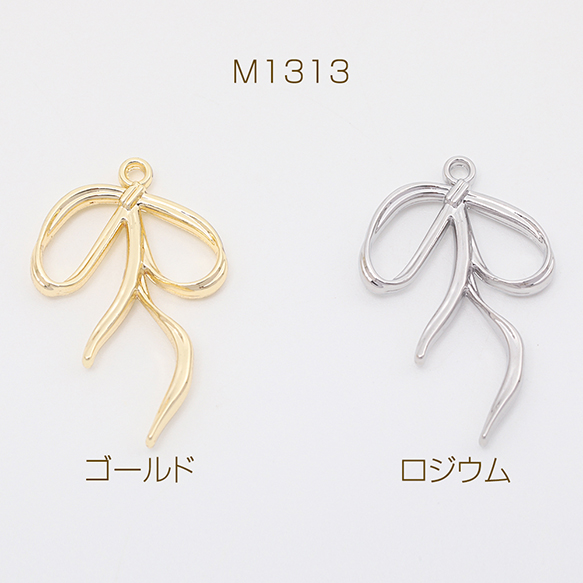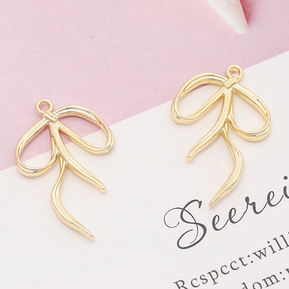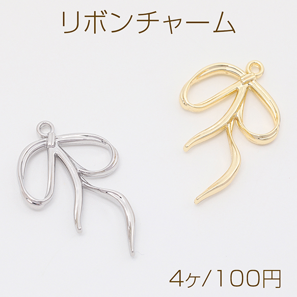 リボンチャーム シンプル リボン 蝶々結び メタルチャーム 約19×30mm(4ヶ)