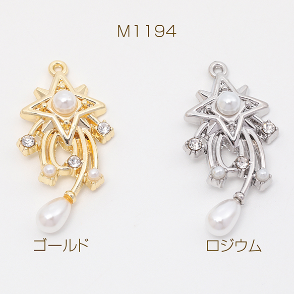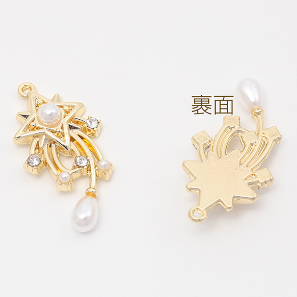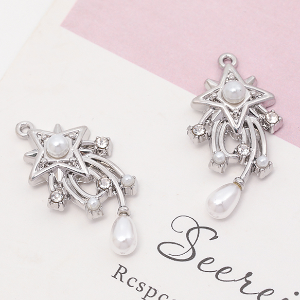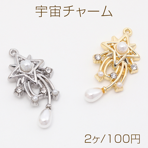 宇宙チャーム 流れ星 流星 スター 宇宙 ABSパール ストーン付き メタルチャーム 約16×31mm(2ヶ)