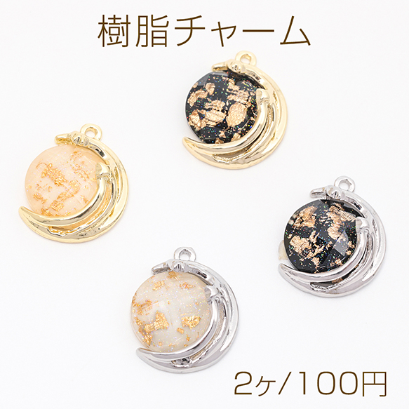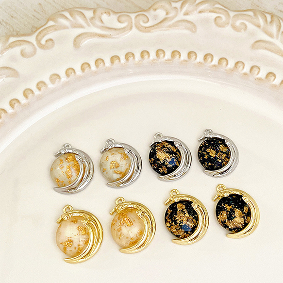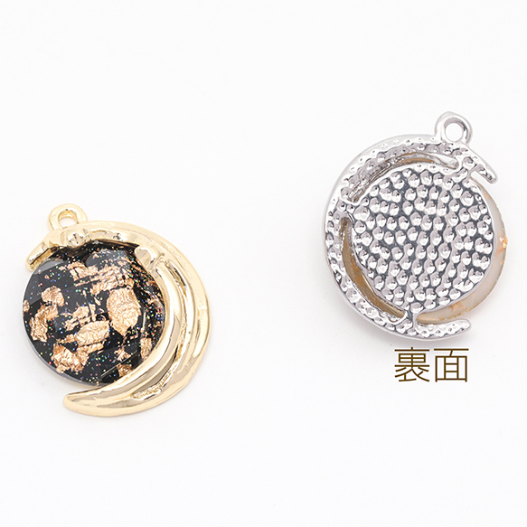 樹脂チャーム 夜空 宇宙 キラキラ オパール風 月チャーム 宇宙チャーム 約17×21mm(2ヶ)