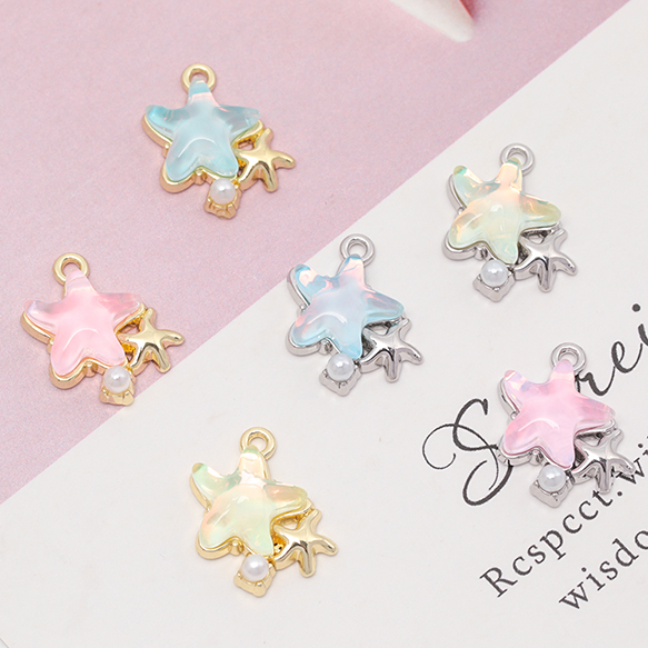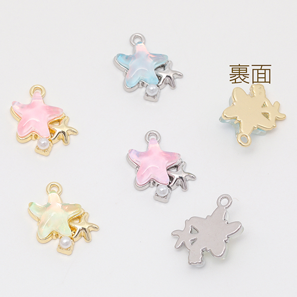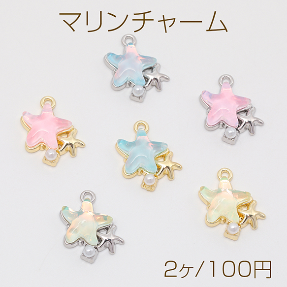 マリンチャーム シンプル ヒトデ 海 ABSパール付き メタルチャーム 約14×16mm(2ヶ)
