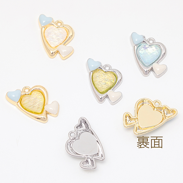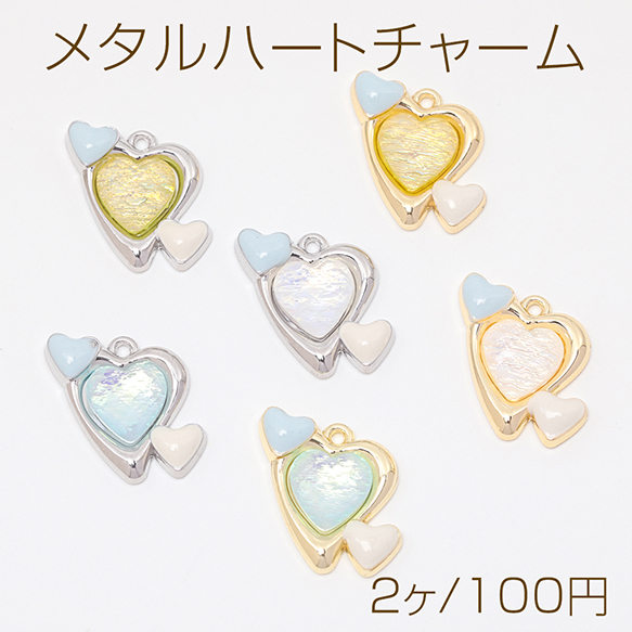メタルハートチャーム ハート ブルー エポ カラフル 半面 メタルチャーム 約18×20mm(2ヶ)