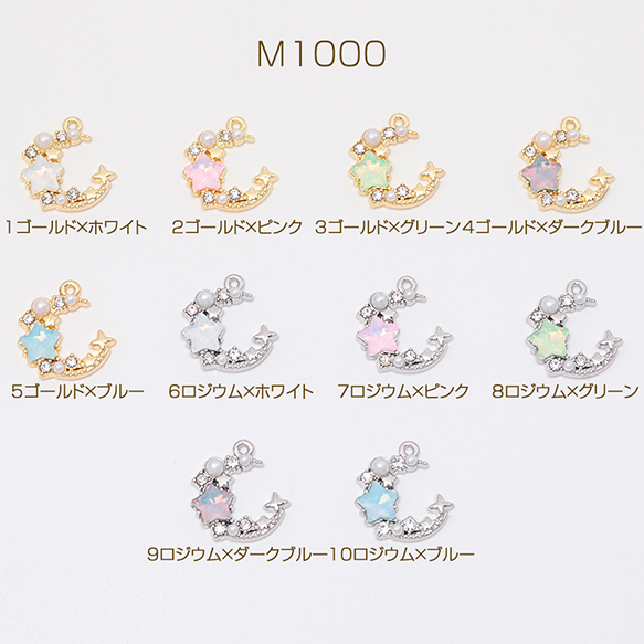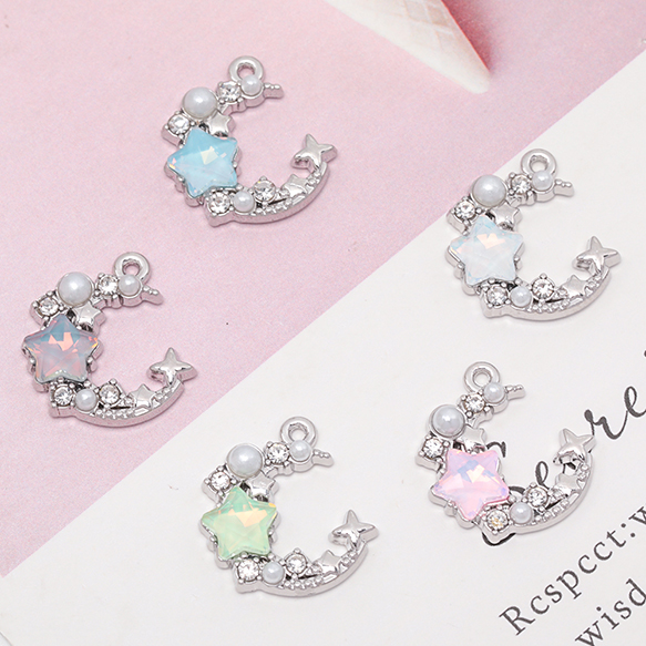 月チャーム 三日月 星 キラキラ ラインストーン付き 宇宙チャーム メタルチャーム 約17×18mm(2ヶ)