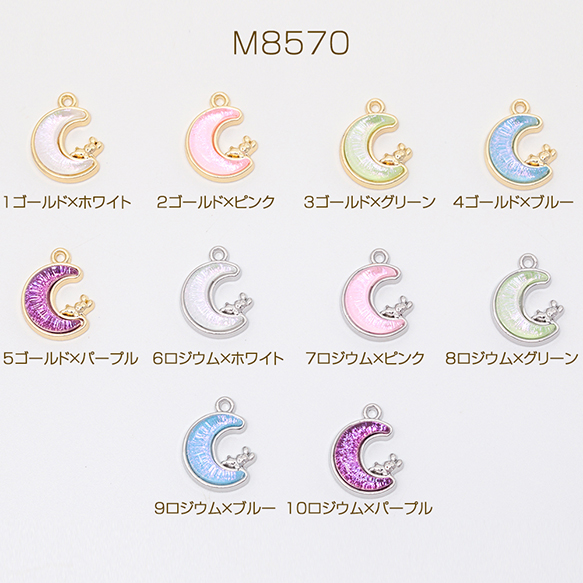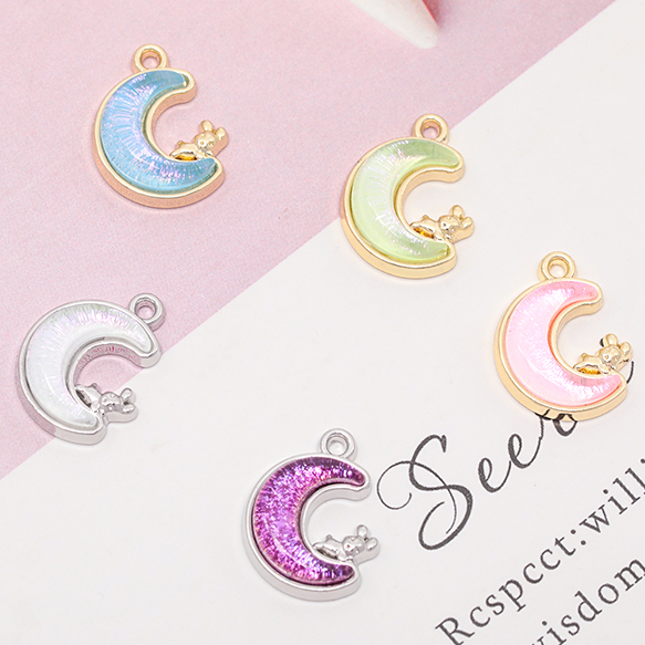 月チャーム 三日月 うさぎ付き 半面 宇宙チャーム メタルチャーム 約12×15mm(2ヶ)