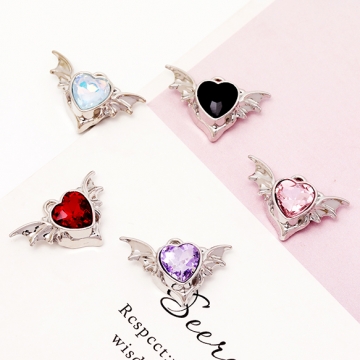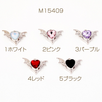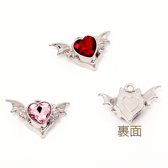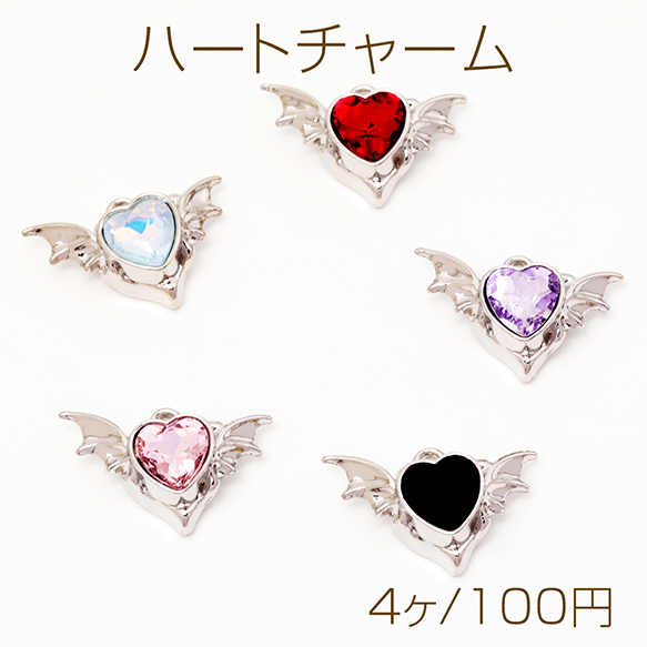 ハートチャーム デビル 悪魔の羽 ハート ストーン付き ダークスイート メタルチャーム 約15×24mm(4ヶ)
