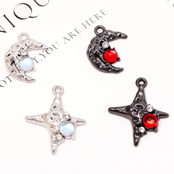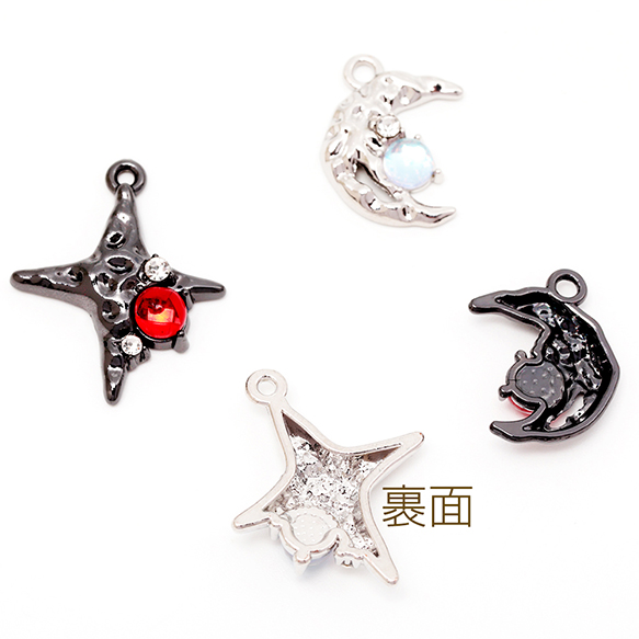 宇宙チャーム スター 星 月 ムーン 三日月 宇宙 ストーン付き ダークスイート メタルチャーム 全4種(4ヶ)