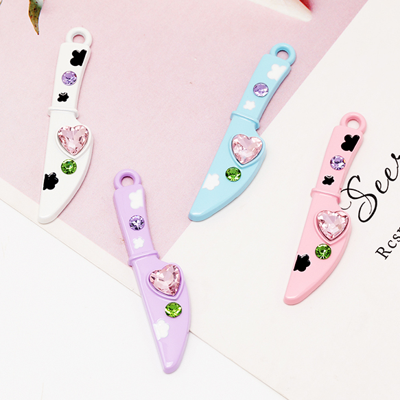 食器チャーム ナイフ カトラリー ストーン付き ダークスイート ミニチュア メタルチャーム 約9×44mm(2ヶ)
