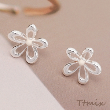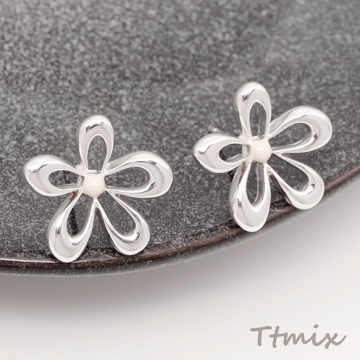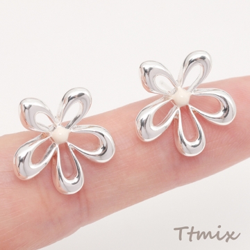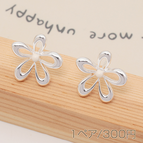 デザインピアス フラワー お花 フレーム シンプル ワンポイントピアス メタルピアス 約18mm(1ペア)
