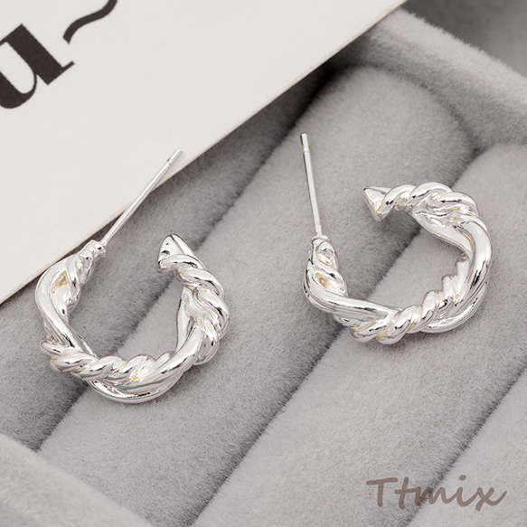 デザインピアス ツイスト C型 華やか メタルピアス 約4.5×18mm(1ペア)
