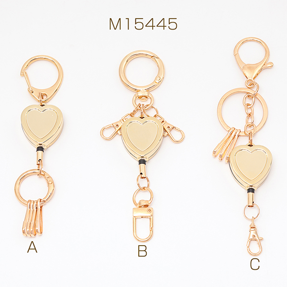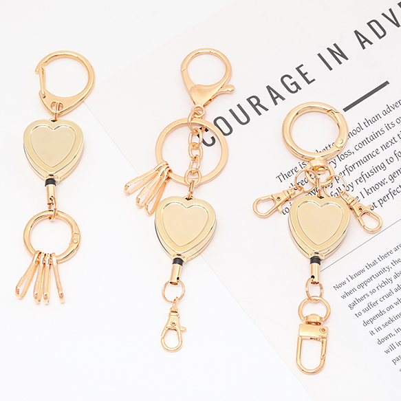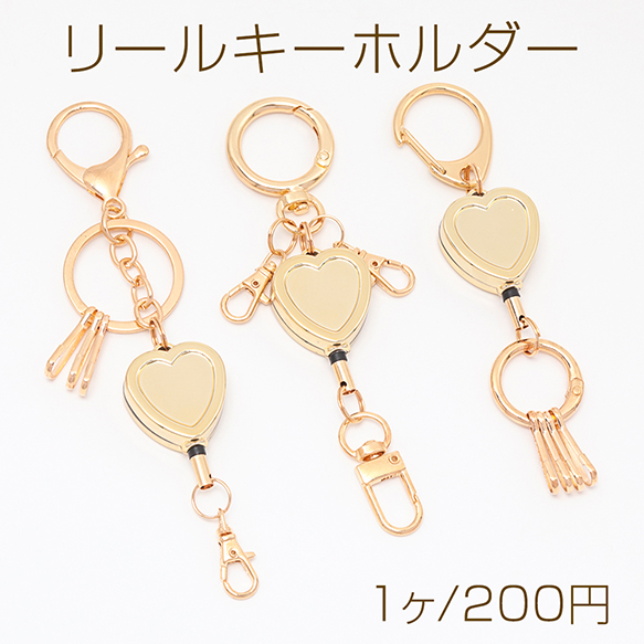 リールキーホルダー 伸縮 ハート型 じゃらじゃら オリジナル キーホルダー リールストラップ 全3種(1ヶ)