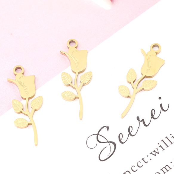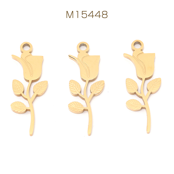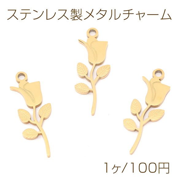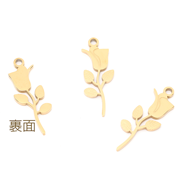 ステンレス製メタルチャーム チューリップ フラワー 花 電気メッキ加工 SUS304 プレートチャーム 約8×24mm(1ヶ)
